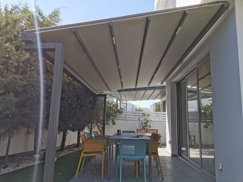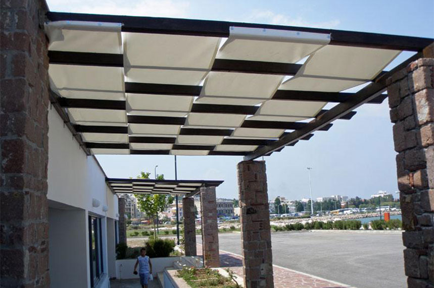 • Πέργκολα με Τεντόπανο απο Τοίχo